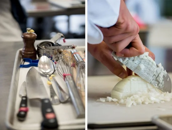 When first starting out in culinary school, my classmates and I were all performing the same task. Each station set with a cutting board, chef’s knife, paring knife, boning knife and vegetable peeler. Each student holding an onion to dice, a rack of lamb to French or a pile of potatoes to tourné.