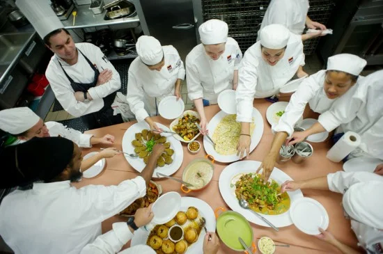 Eventually, as we moved on to different cooking methods—learning to sauté, braise, grill, roast and fry—we worked in teams of three or four. The real test here was learning to communicate within a group, delegating who would break down which vegetables and proteins; measure out spices, wine or oil; and most importantly, who would make sure nothing overcooked or burned.